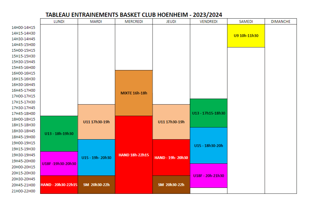 Planning des entrainements 2025/2026